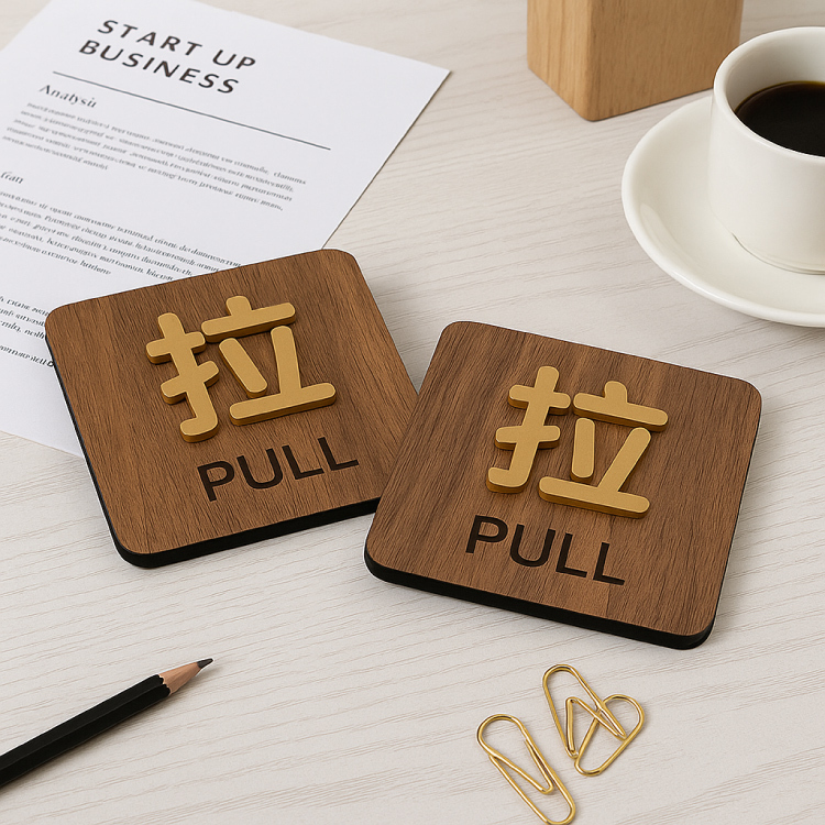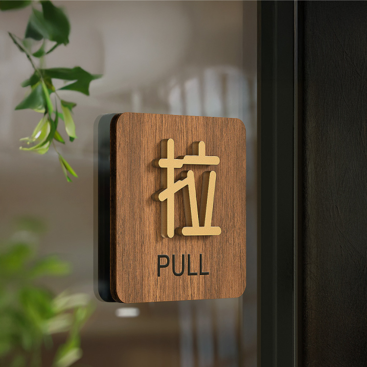 實木木飾板搭配仿古銅金字設計