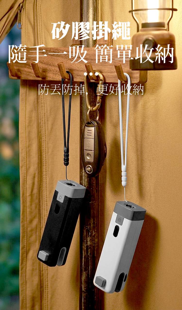 磁吸收納:不使用時可直接吸附於鐵質表面或使用掛繩懸掛。
