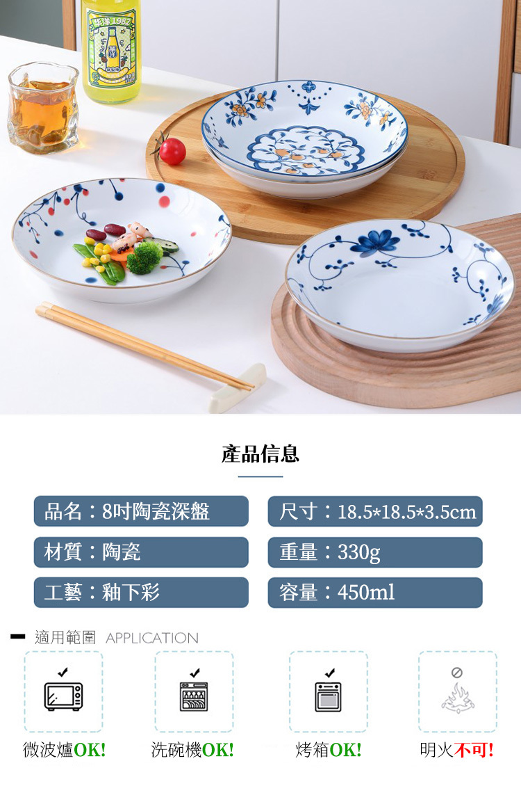 精選8吋(約450ml)圓形深瓷盤,設計時尚,質感絕佳。