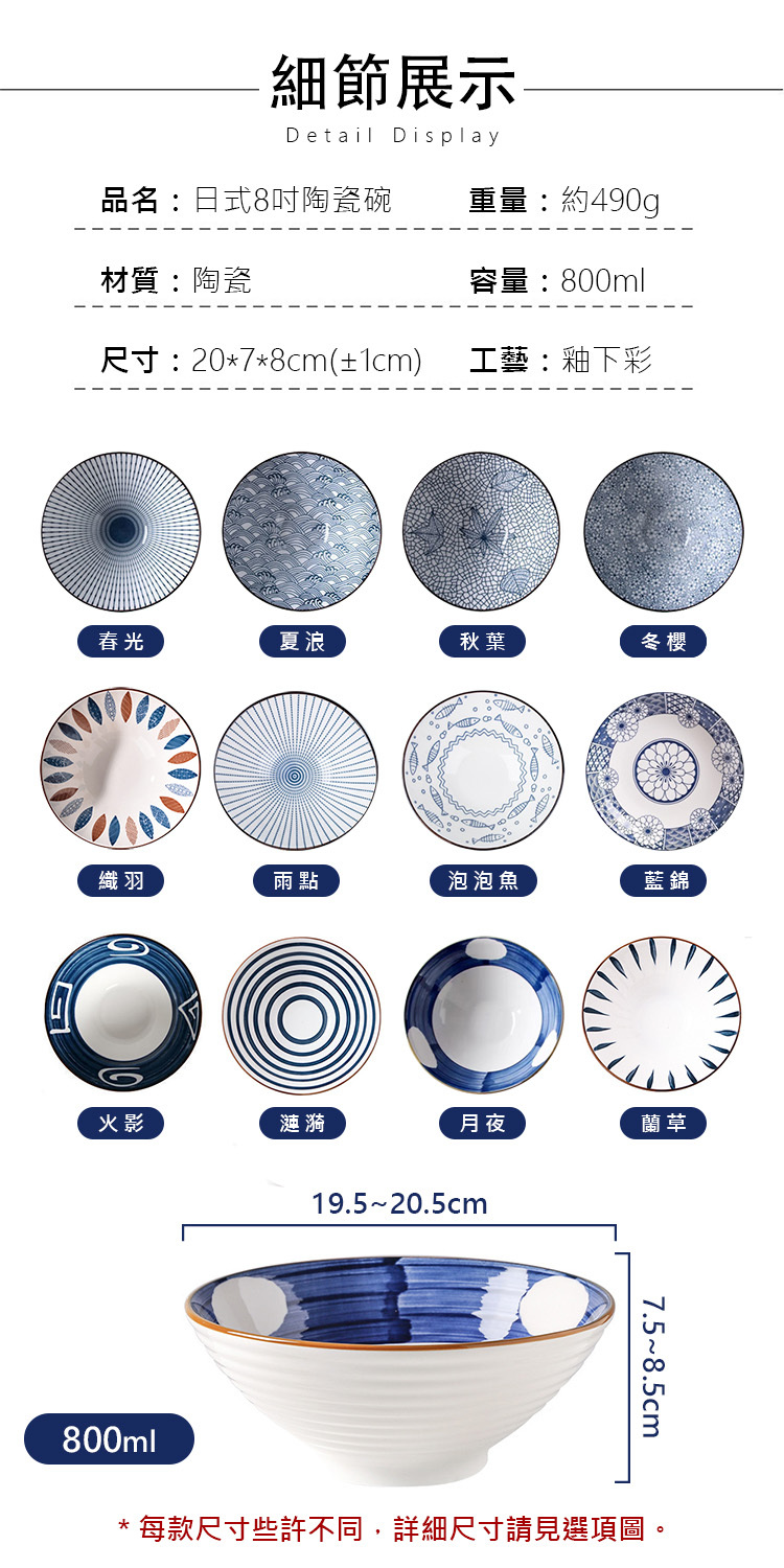 這款日式8吋大碗,擁有800ml的完美容量。