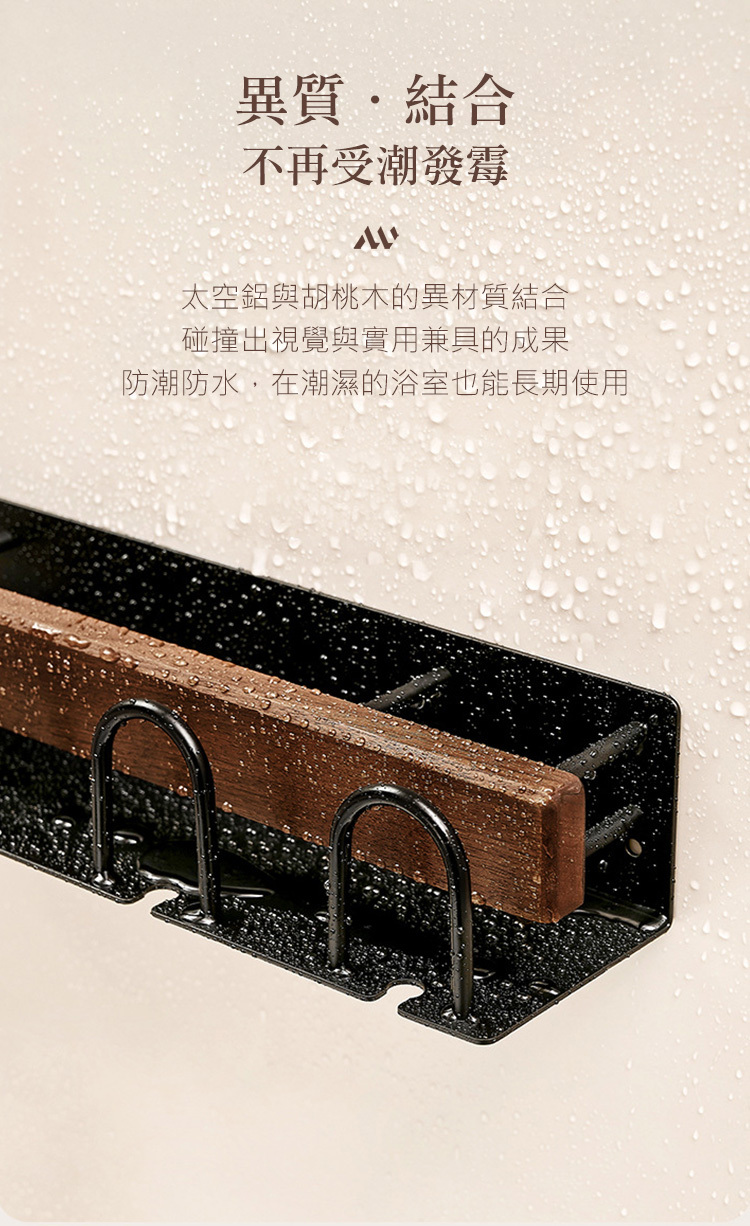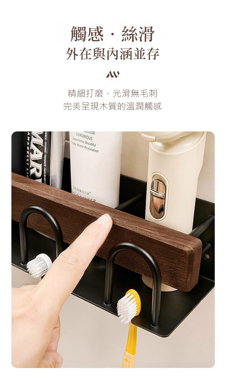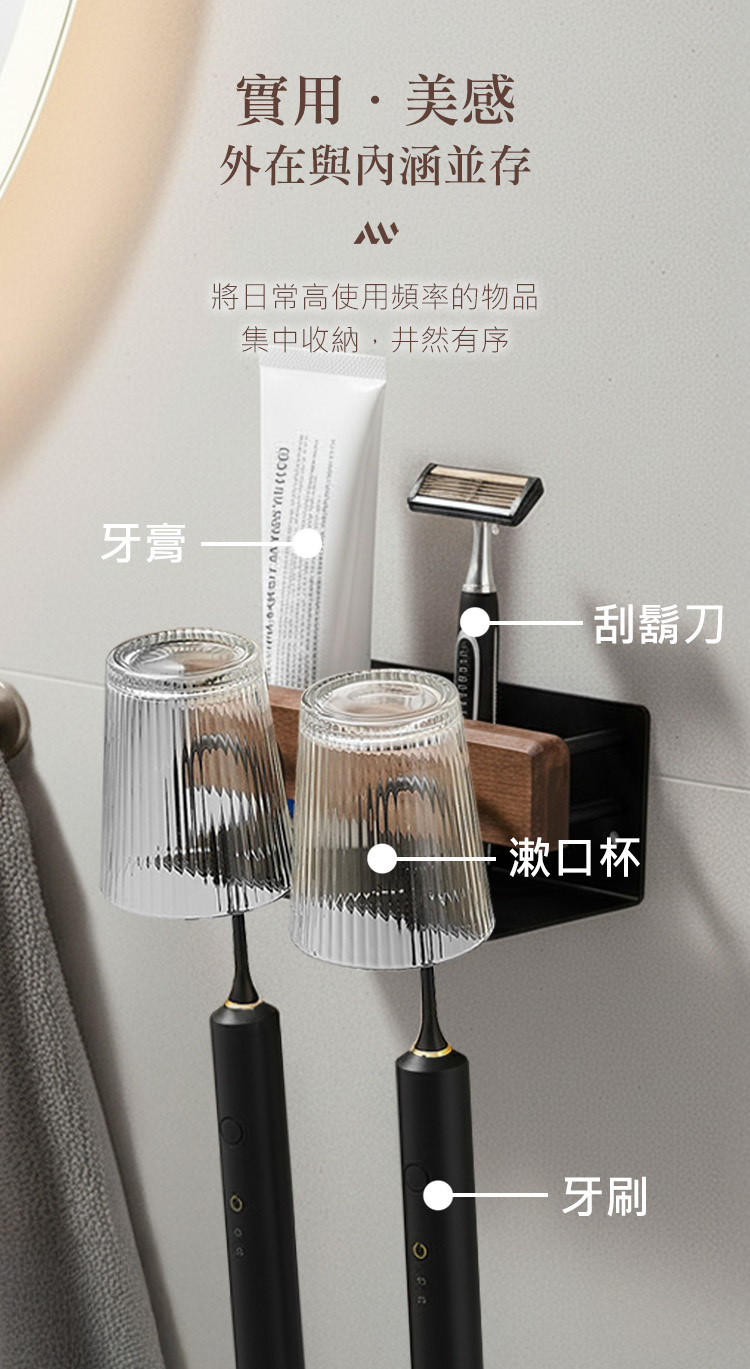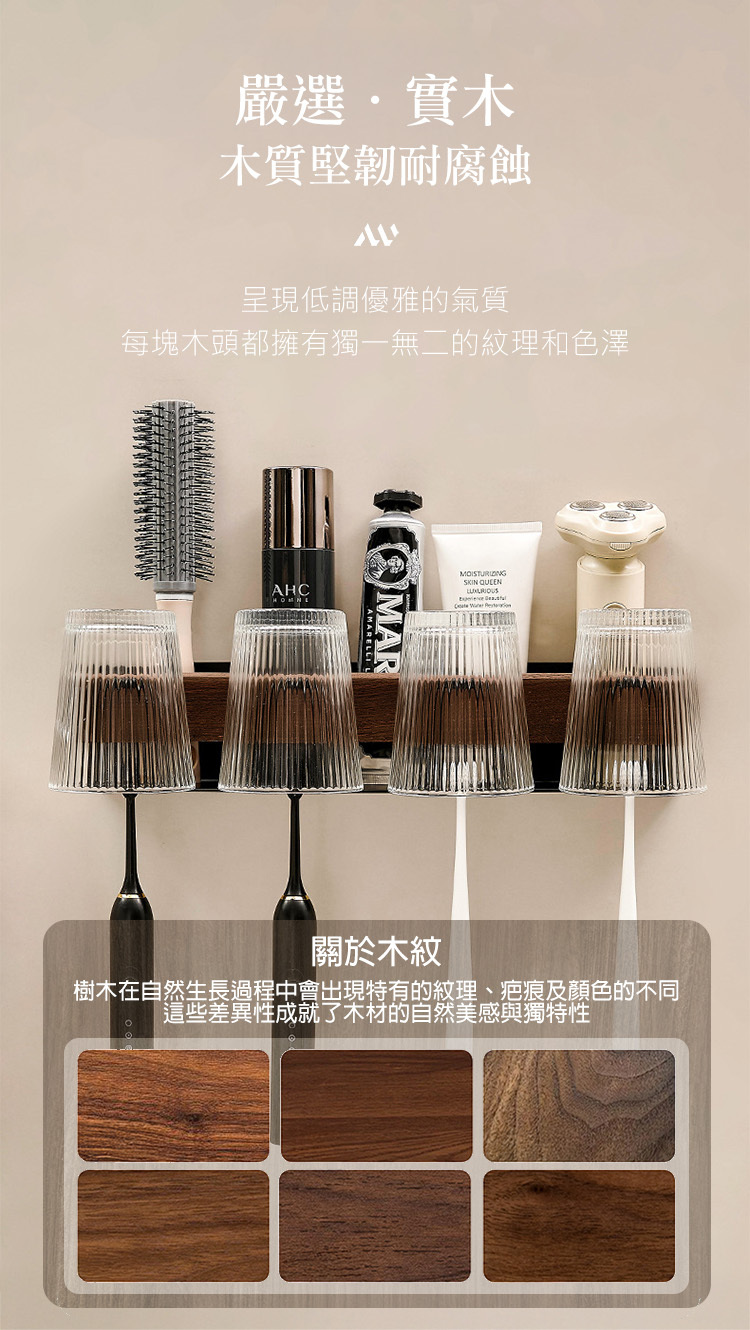 牙刷架融合了天然胡桃木與耐用的太空鋁