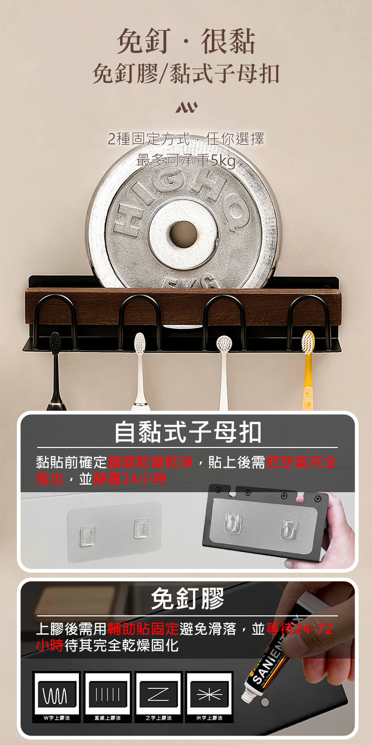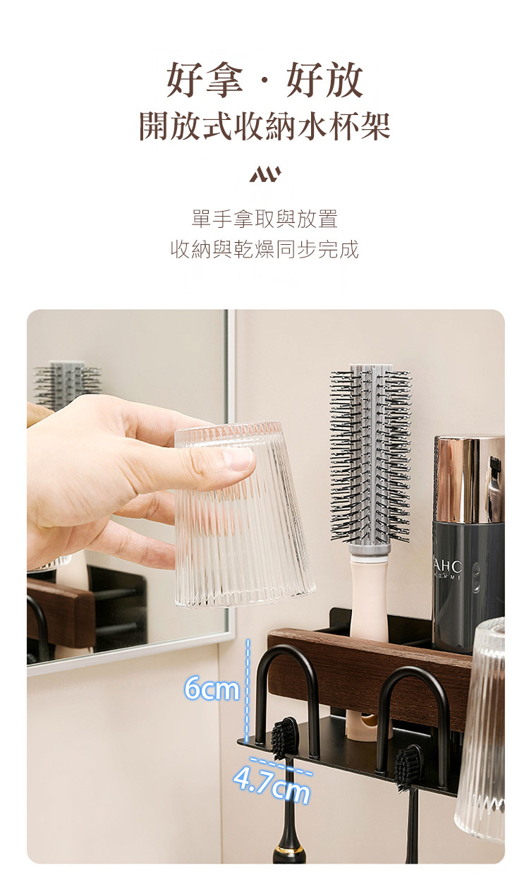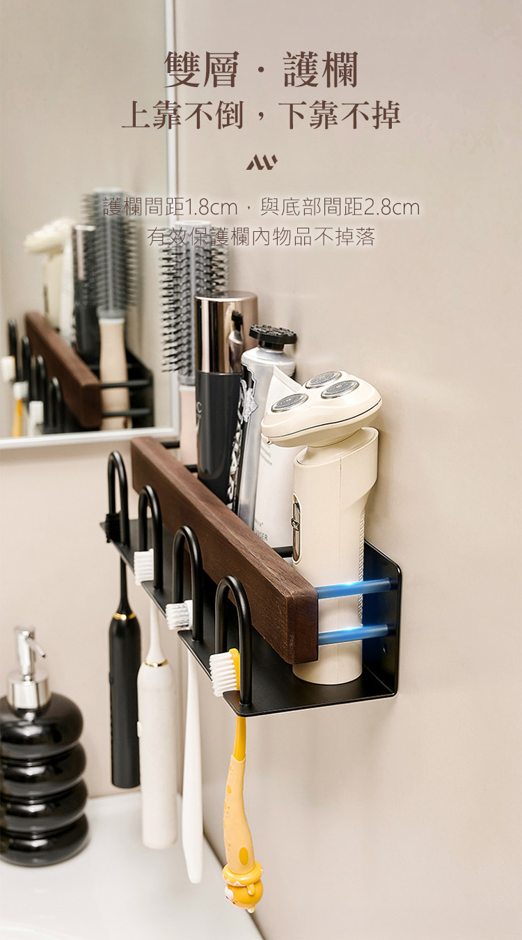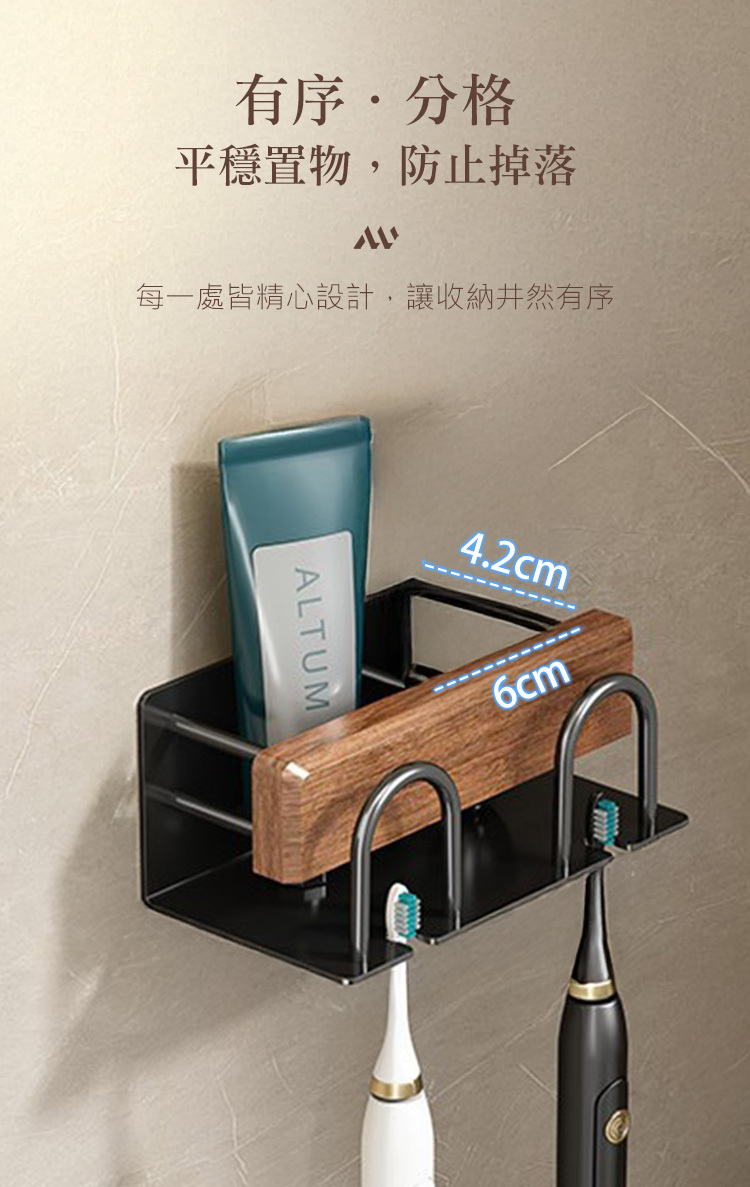 牙刷架融合了天然胡桃木與耐用的太空鋁