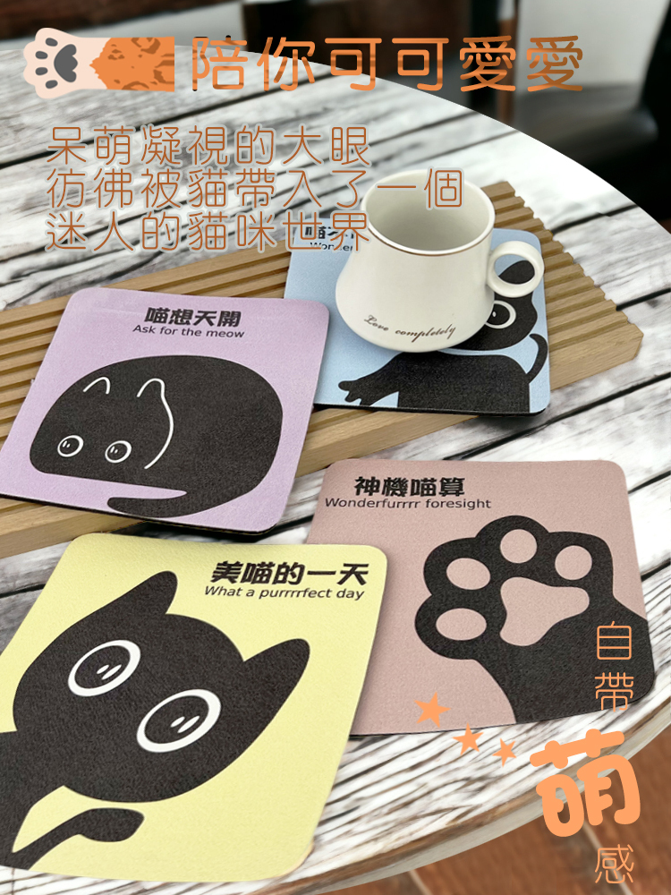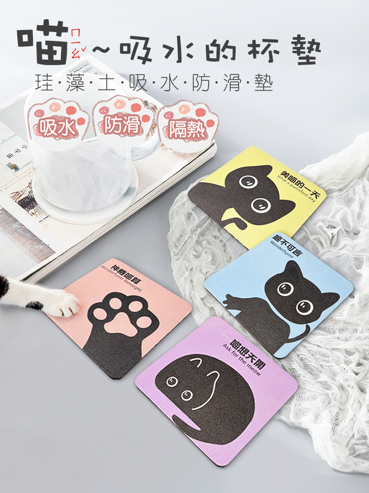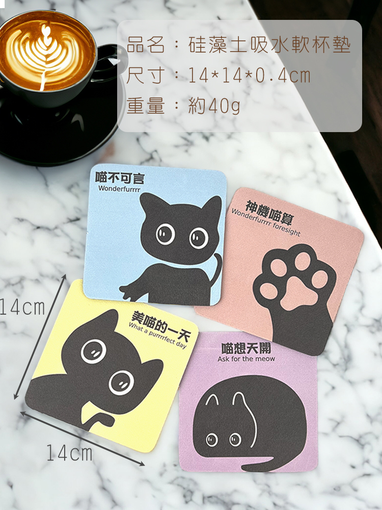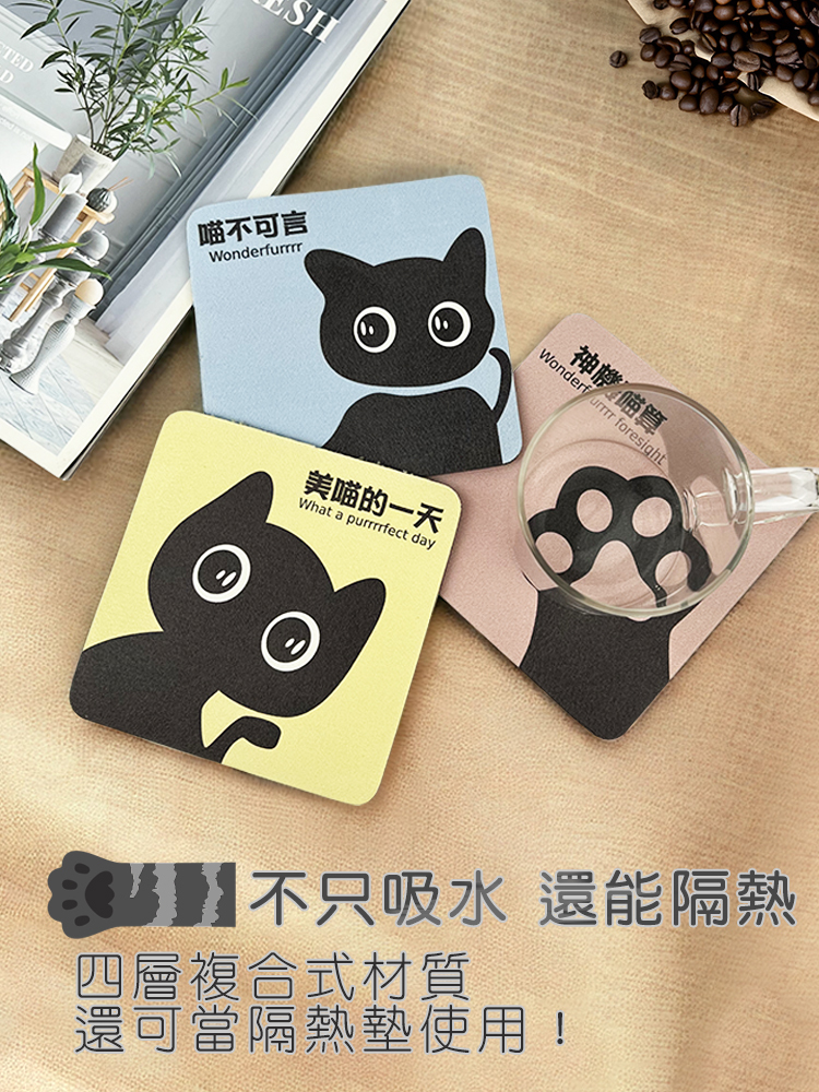 可愛大眼的黑貓珪藻土軟杯墊