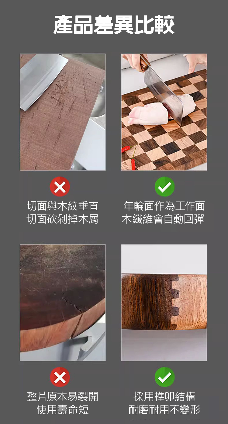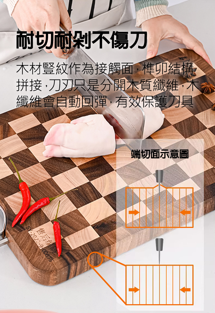 平行木紋刀切面 — 提供平滑切割,不留木屑。