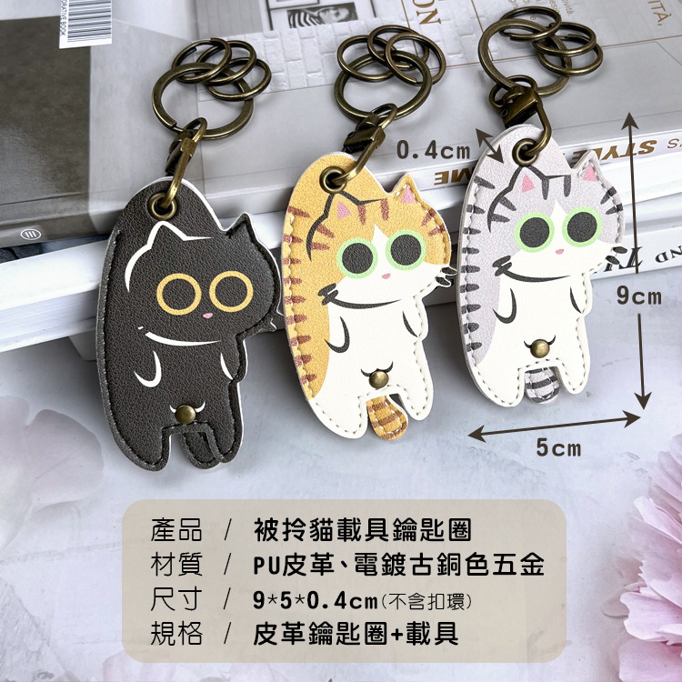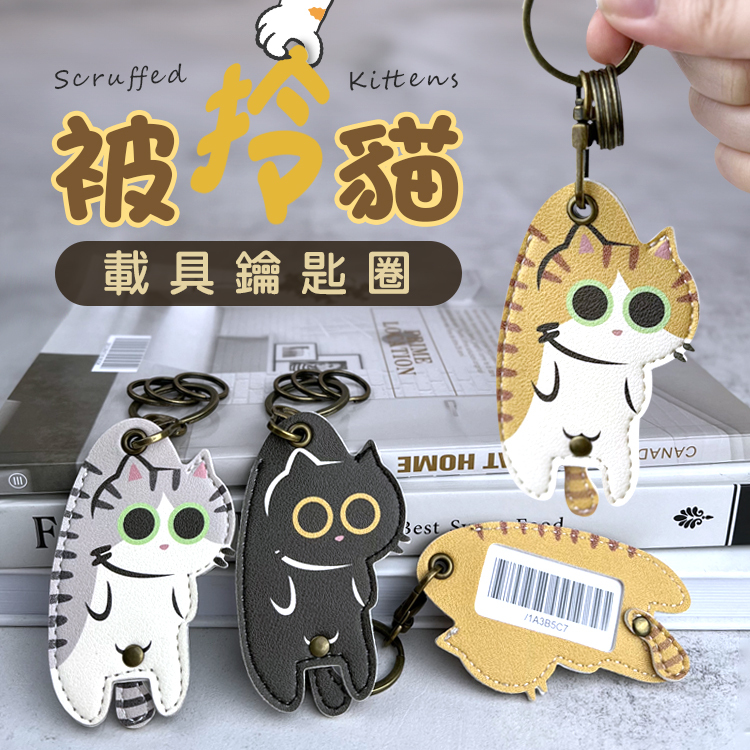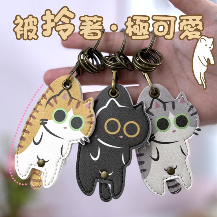 這款PU皮革鑰匙圈,巧妙地捕捉了貓咪被輕柔拎起的🐱呆萌姿態。