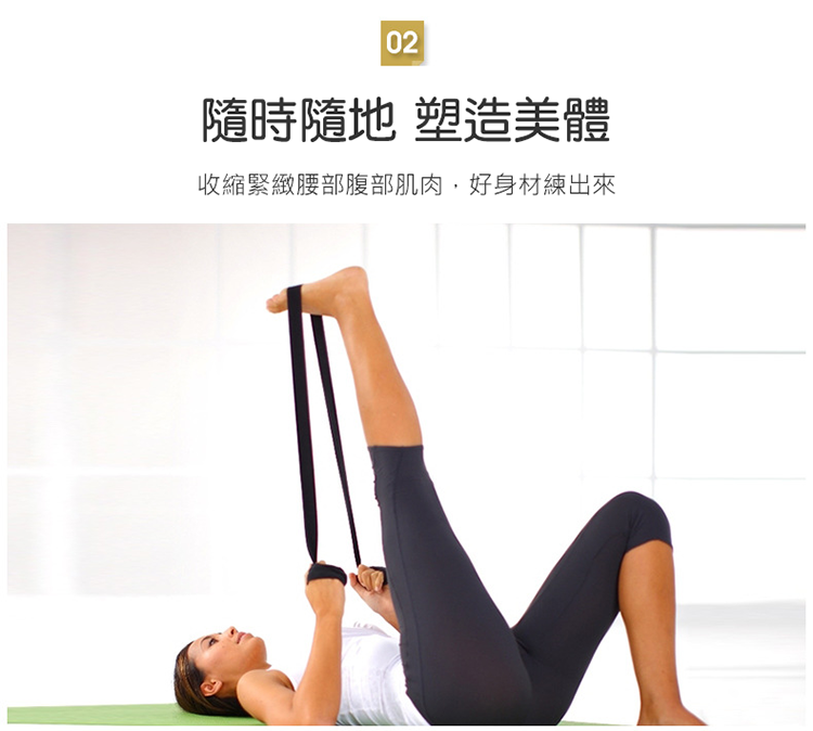 藉由伸展帶緊實的扣住身體
