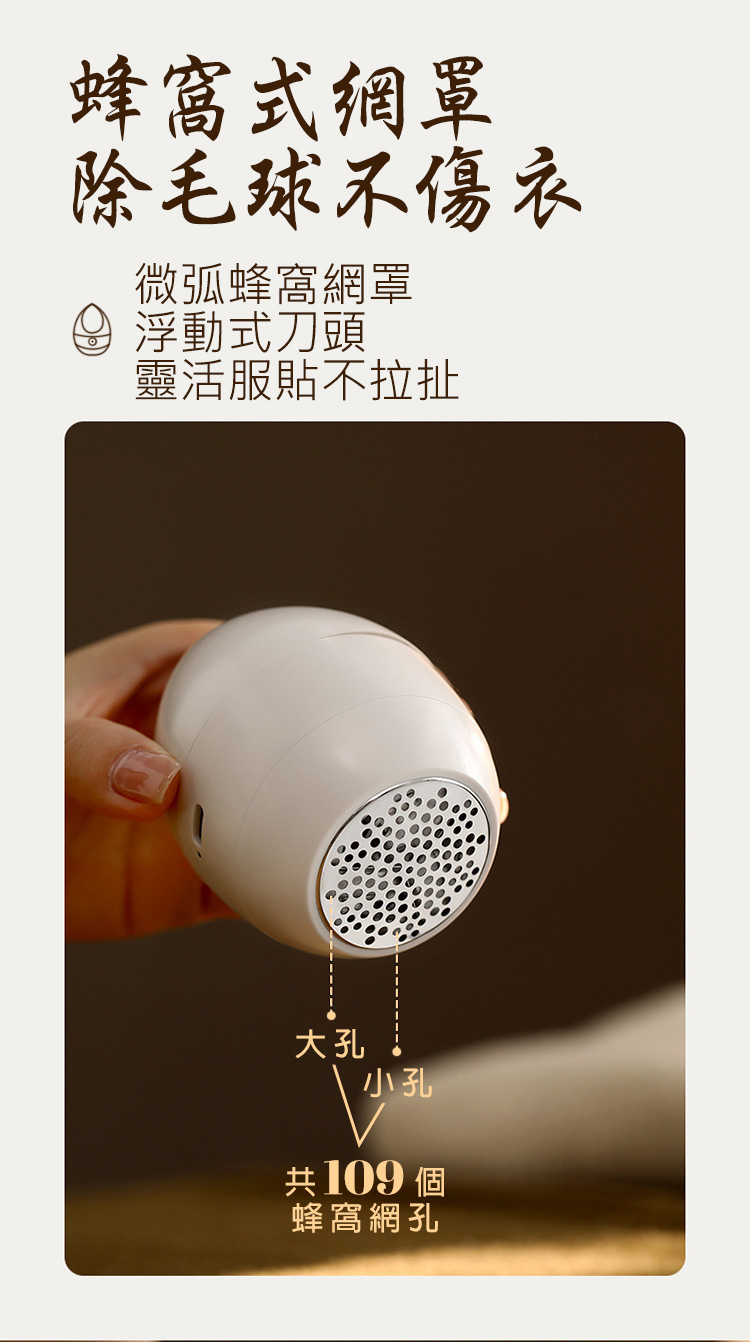 獨特的蜂窩網罩和浮動式刀頭設計適應衣物的每一個弧度,