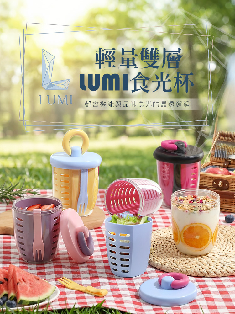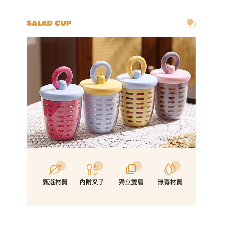 懶人一體設計:不用再翻找餐具,杯蓋自帶叉子與提環,提了就走,上班上課超優雅。