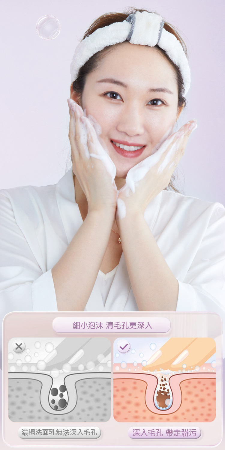 輕柔覆蓋每寸肌膚,深入毛孔帶走汙垢,