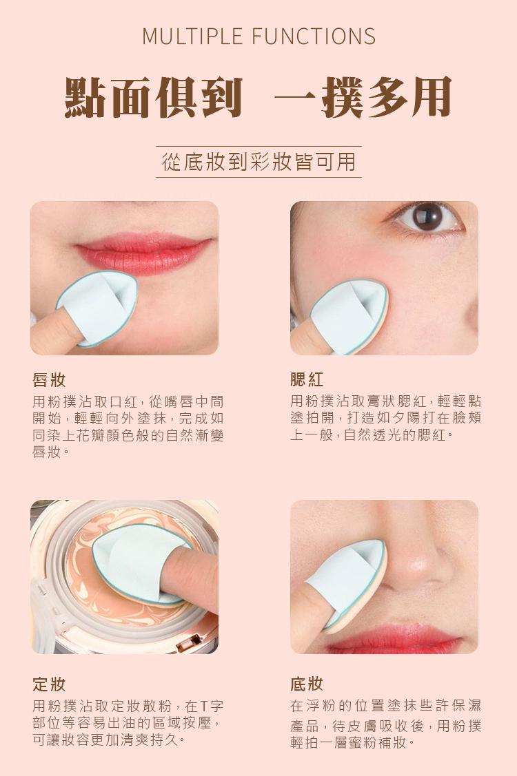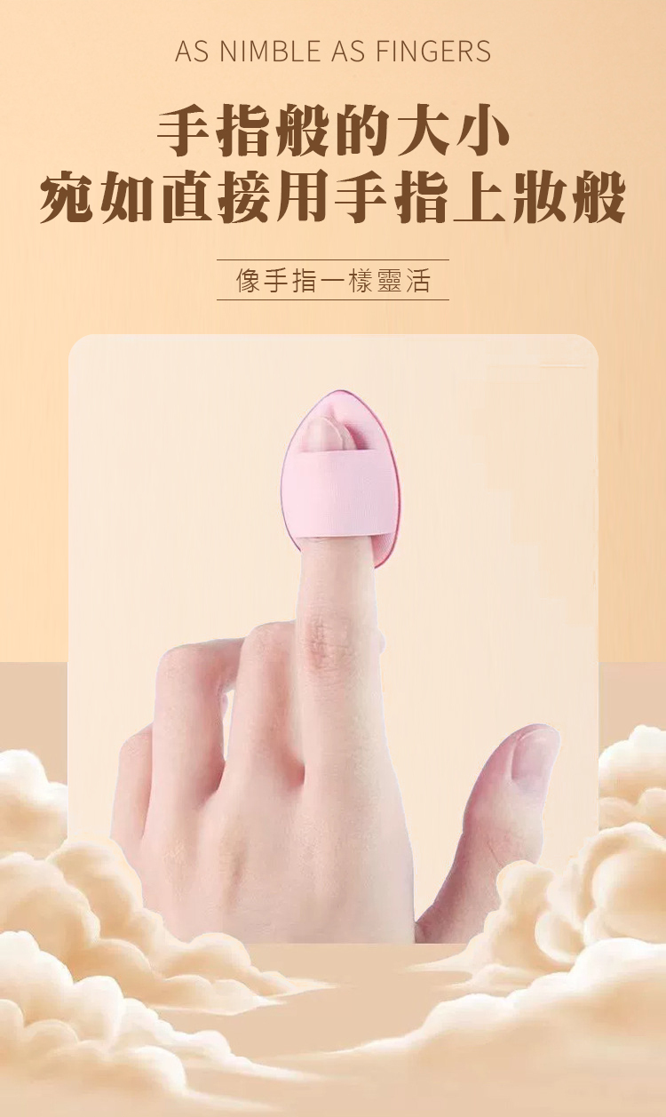 革命性設計 — 「手指粉撲」,專為細節化妝設計,直接套於手指🖐。