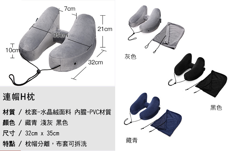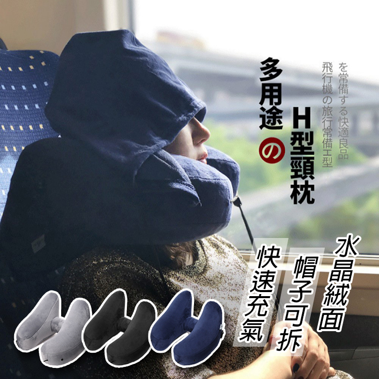 用上這款H型充氣連帽飛機枕,旅途中不再因為睡不好而煩惱,頭再也不會左擺右晃了!!🥳