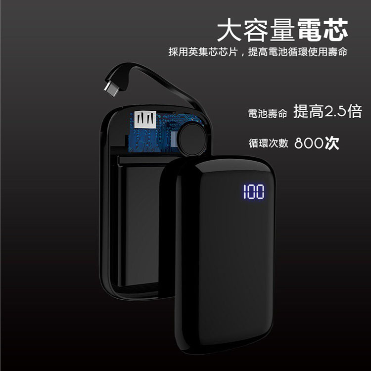 自帶線液晶顯示行動電源