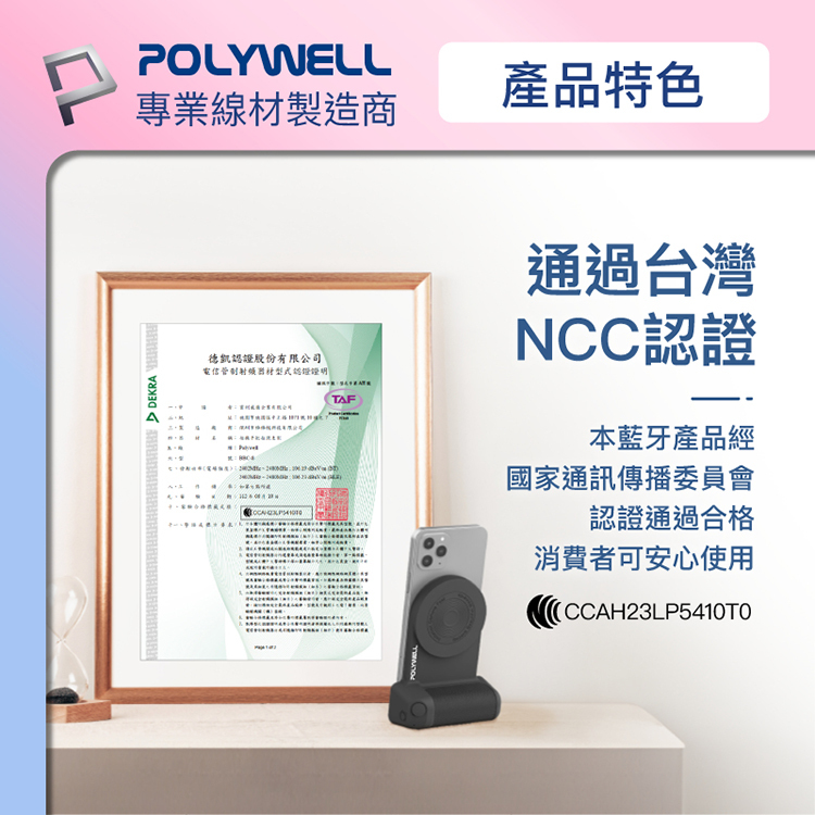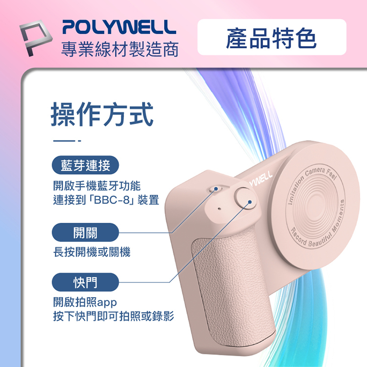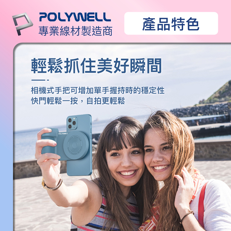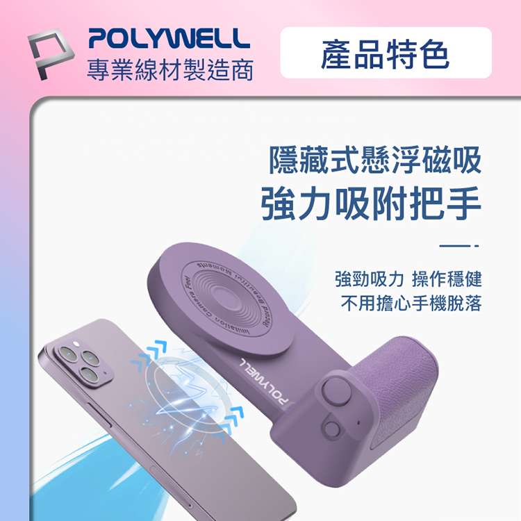 ◎ 產品: POLYWELL 磁吸式藍牙相機手把