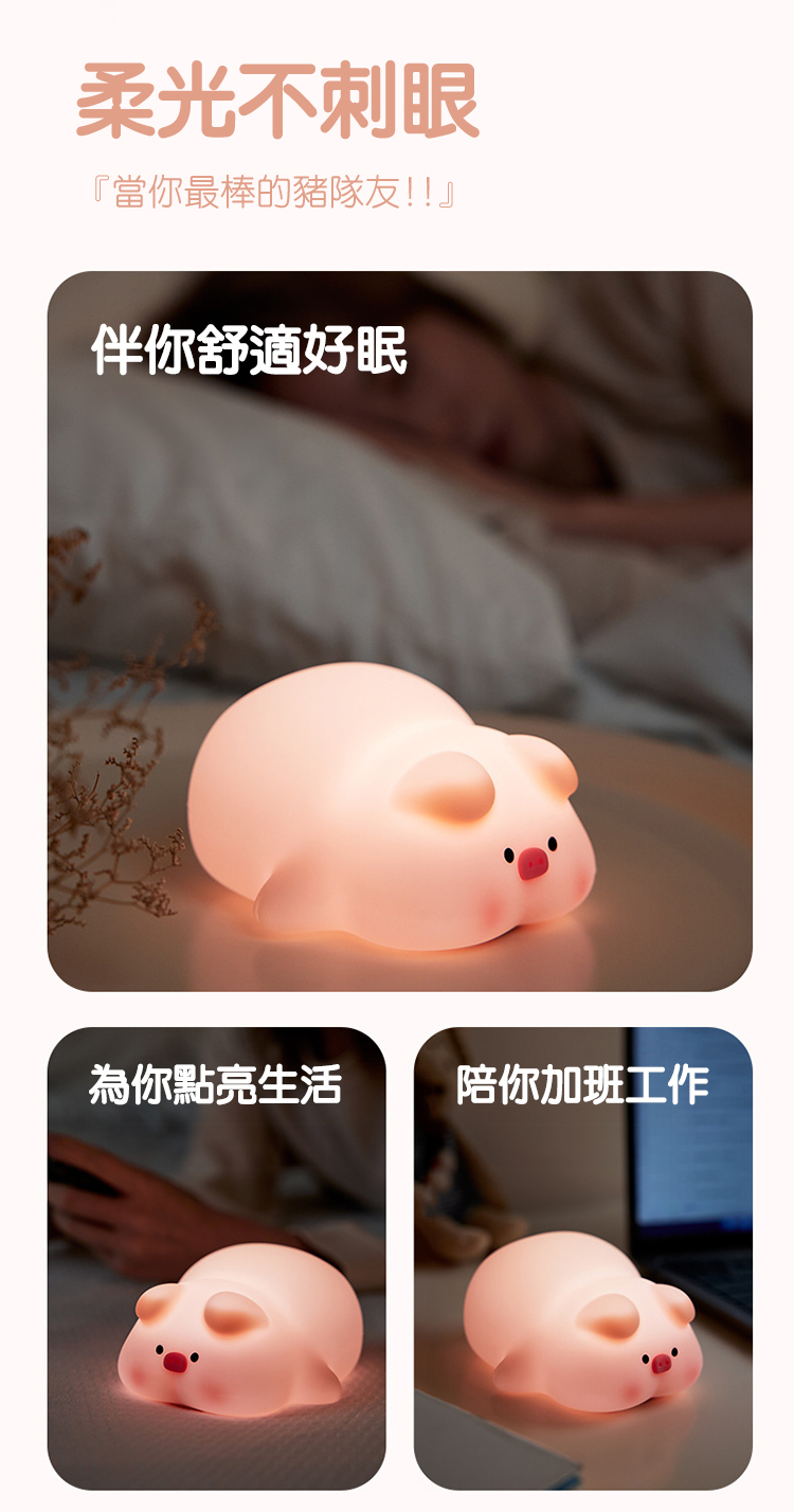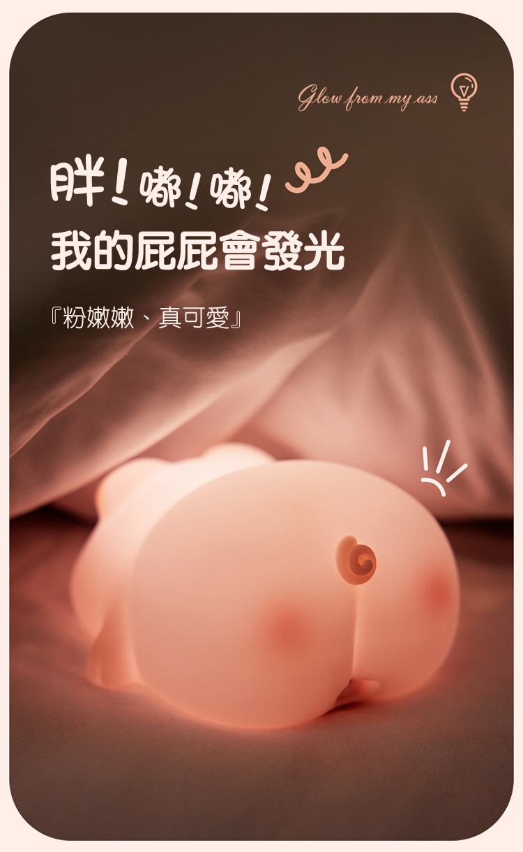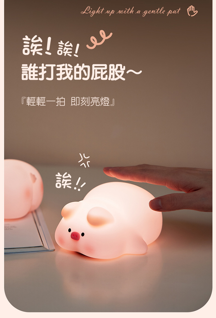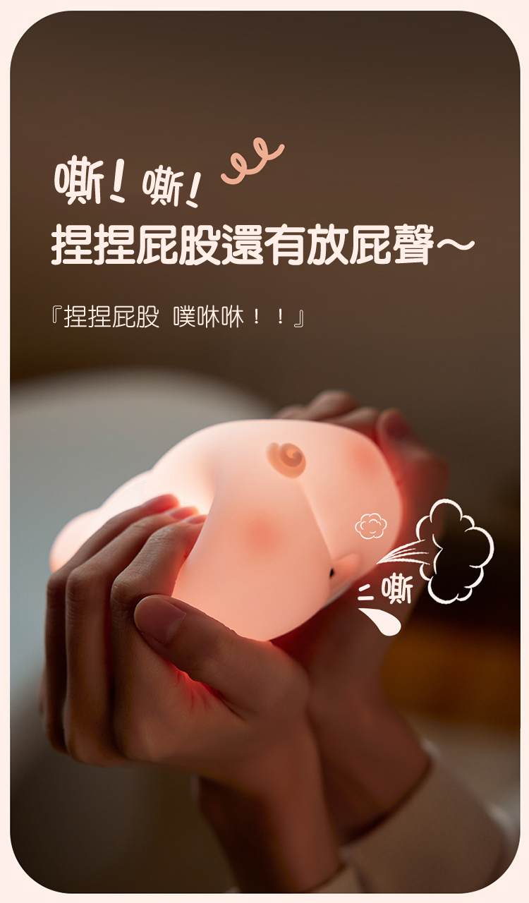 矽膠小豬夜燈,捏一捏還會放屁聲,樂趣滿分!