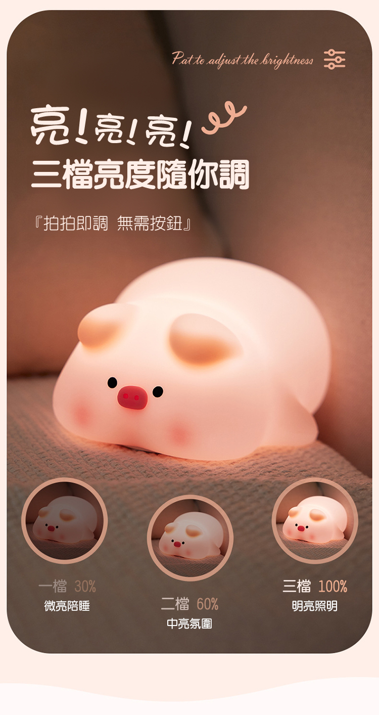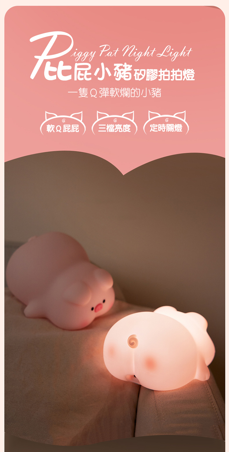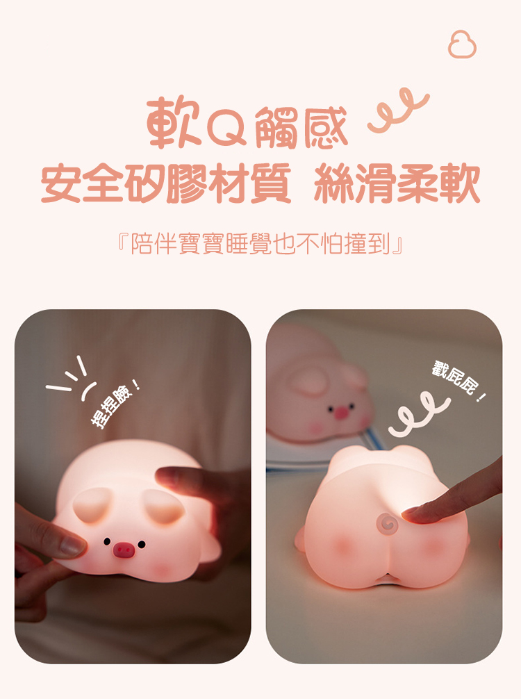 矽膠小豬夜燈,捏一捏還會放屁聲,樂趣滿分!