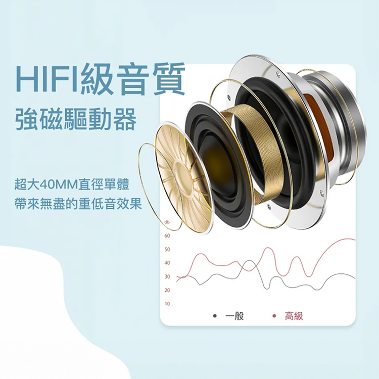 🎧 40mm大喇叭驅動,中高音更清晰,細膩生動