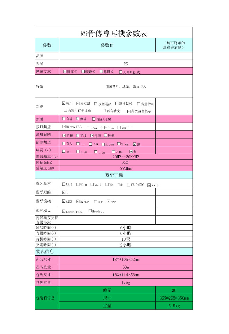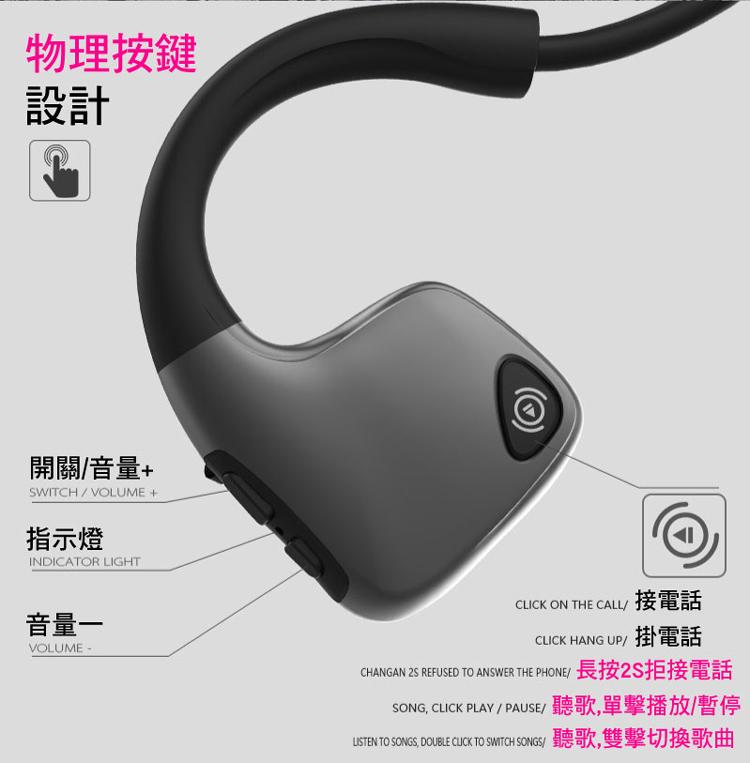 商品內容:骨傳導藍牙耳機×1、充電線×1、說明書×1、耳塞×2