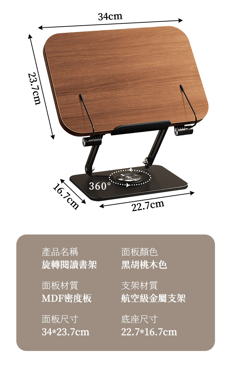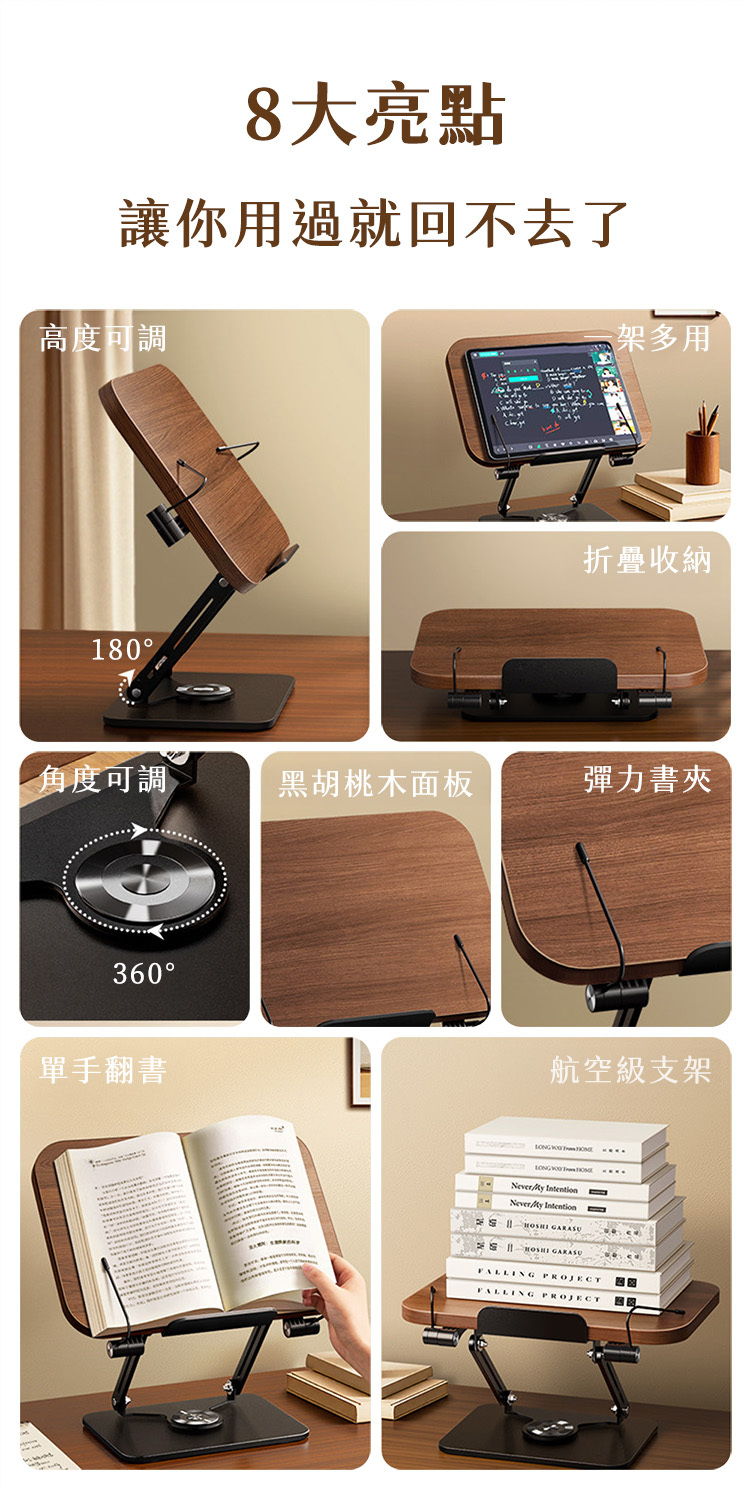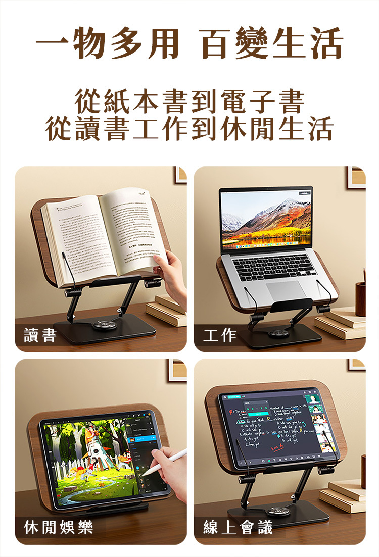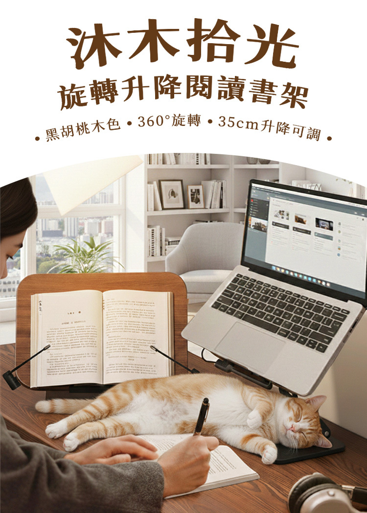 這款嚴選「實木旋轉升降閱讀架」,專為現代學習與辦公設計。