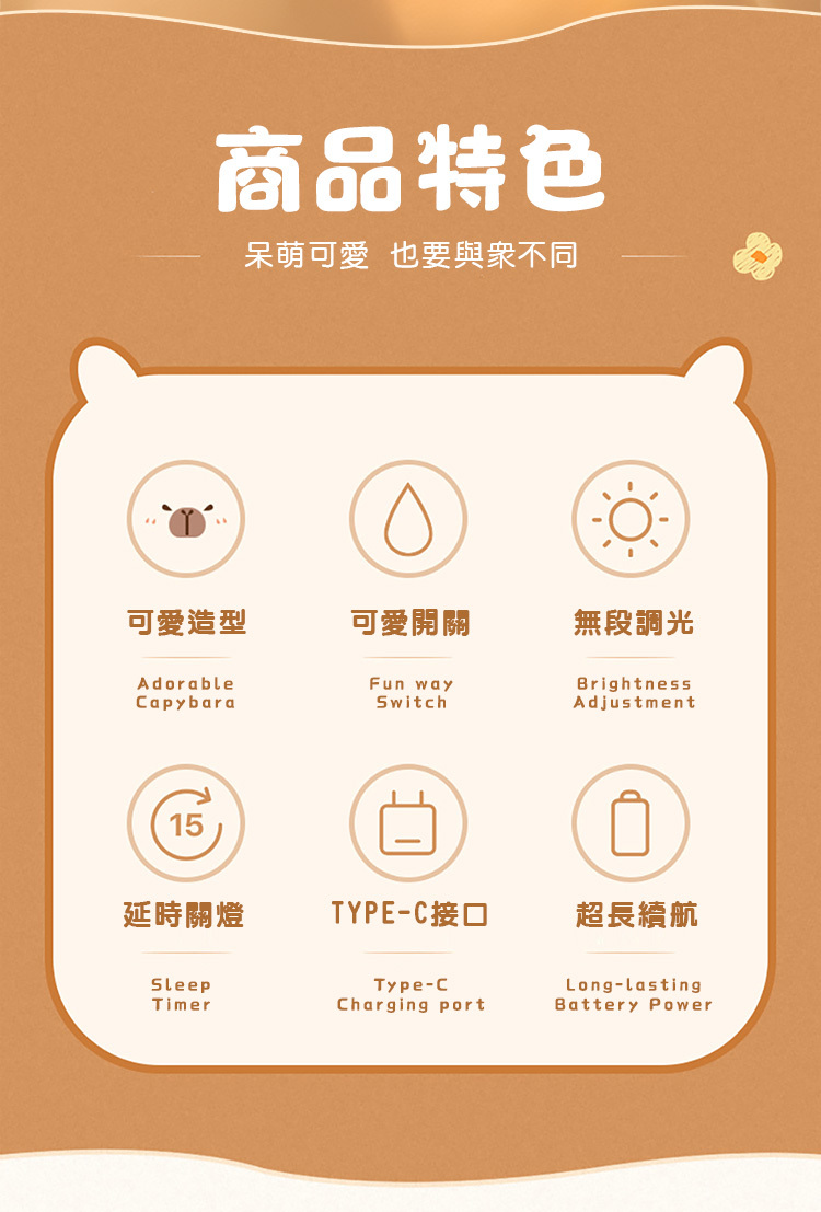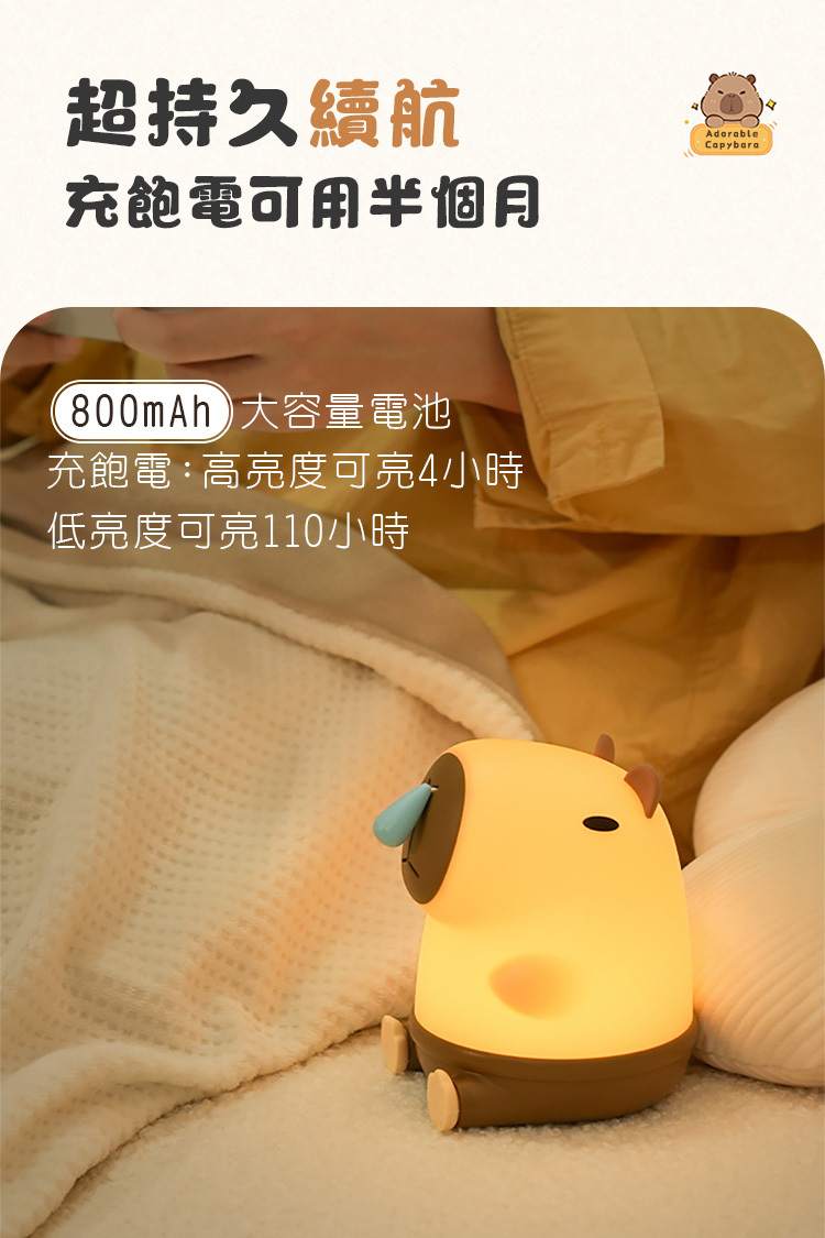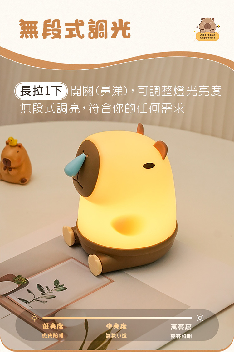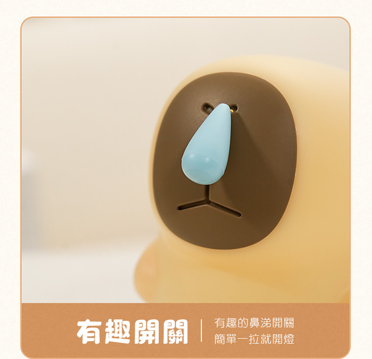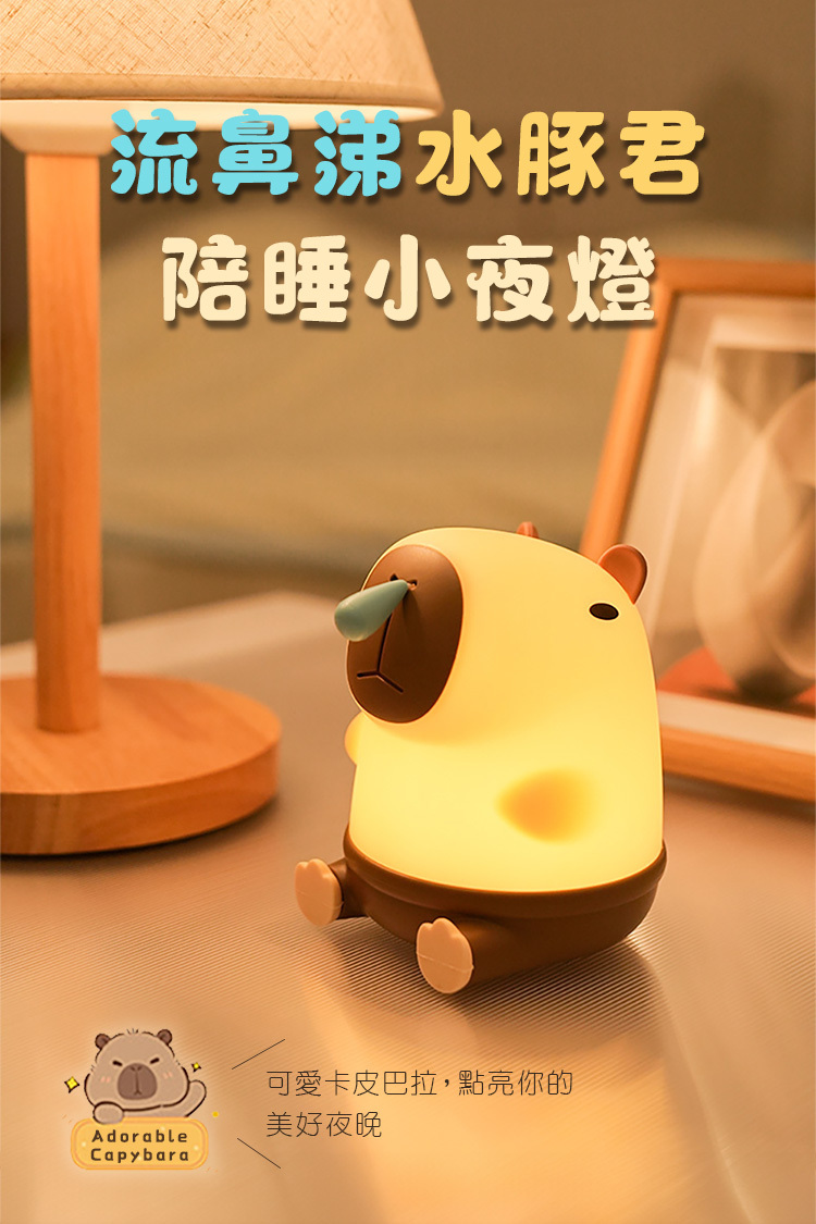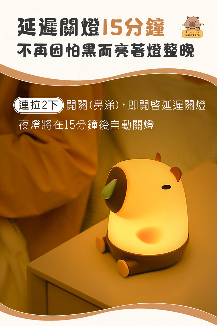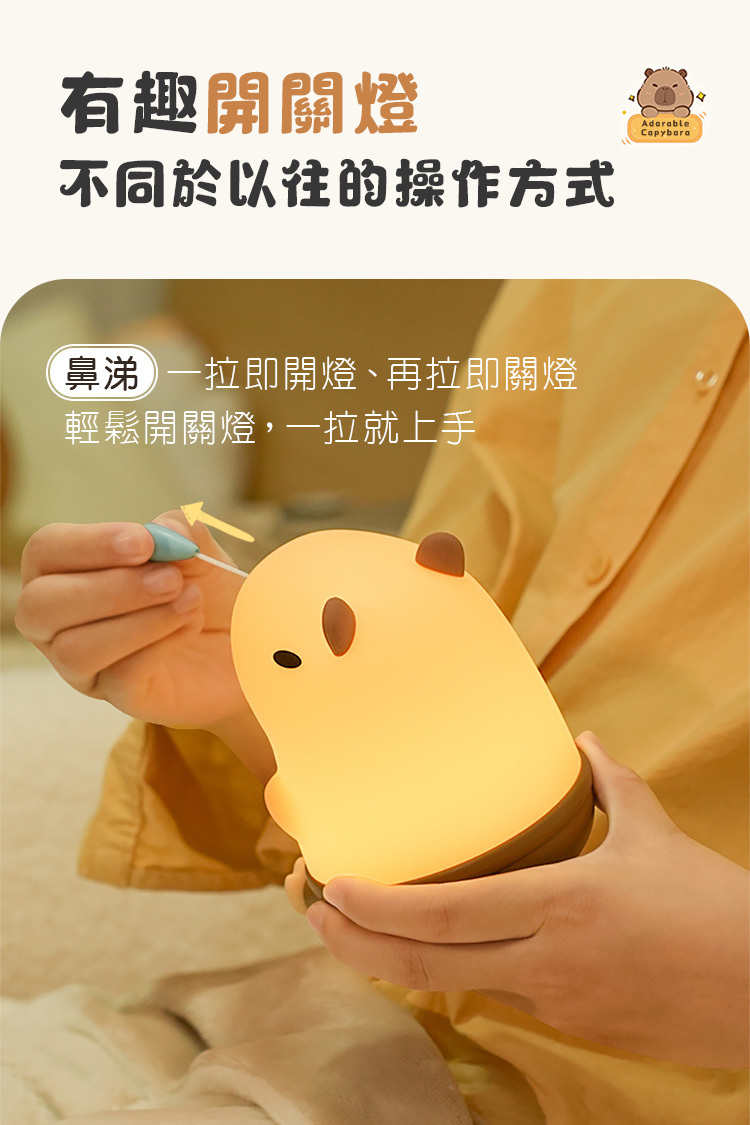 輕輕拉一下水豚君的鼻涕,🥰柔和的光線立刻照亮房間,讓孩子安心入睡。