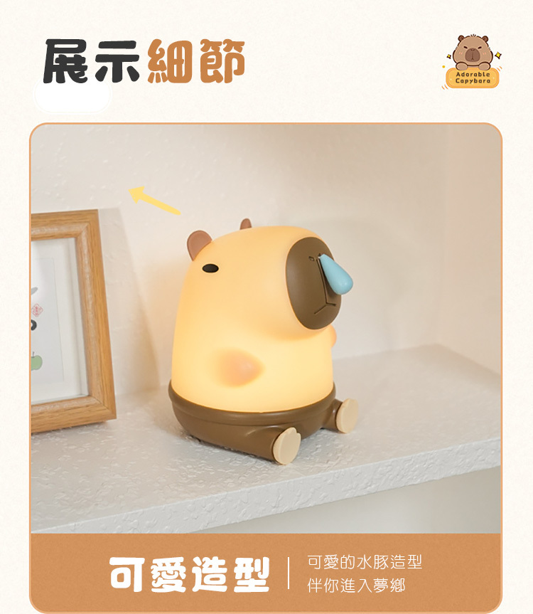 想給寶貝一個溫馨又有趣的睡眠環境嗎?這個可愛的水豚夜燈絕對是您的最佳選擇!😊