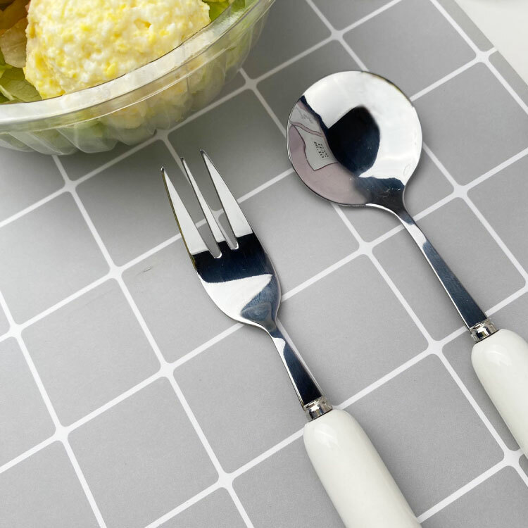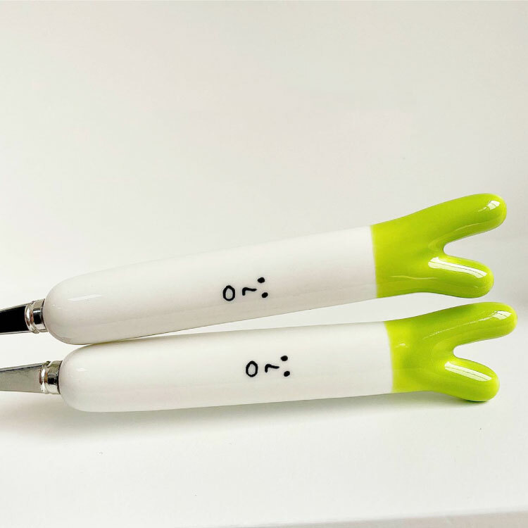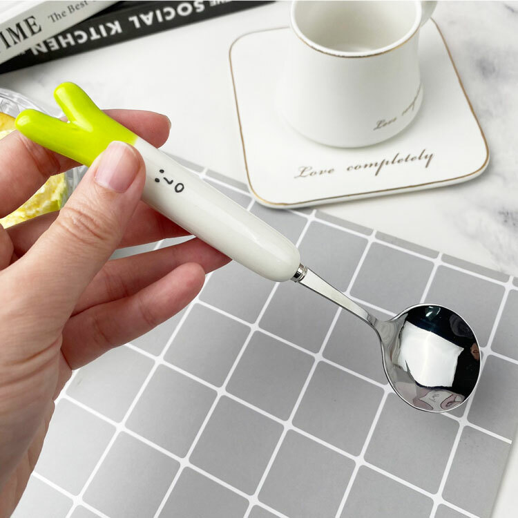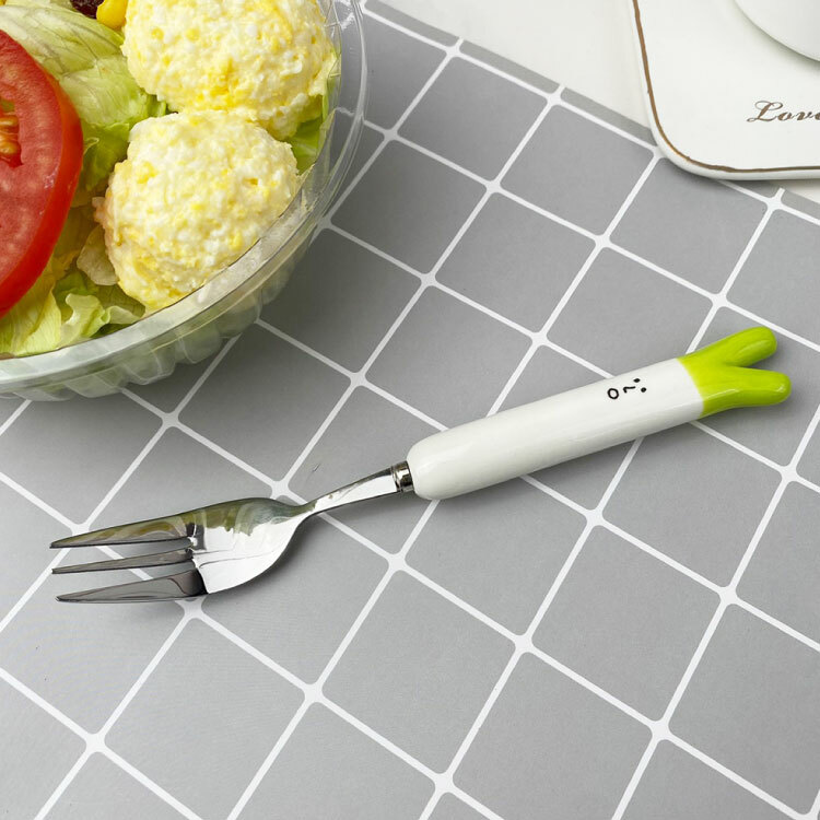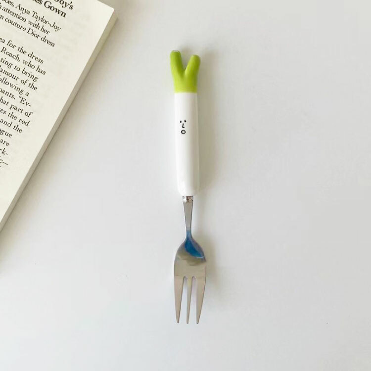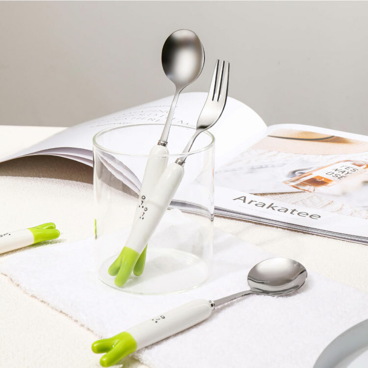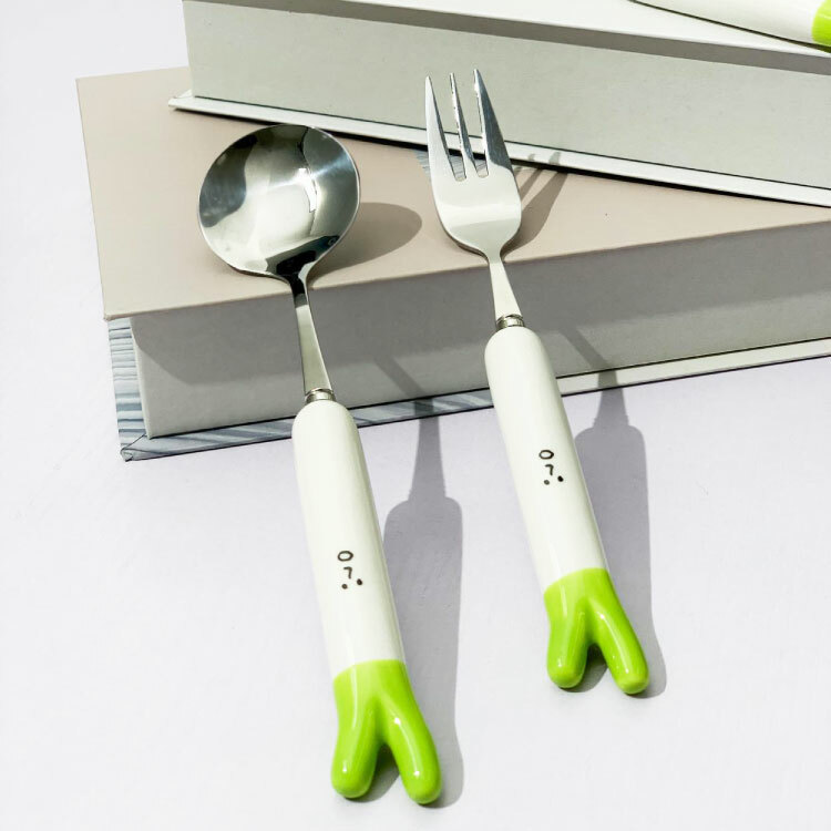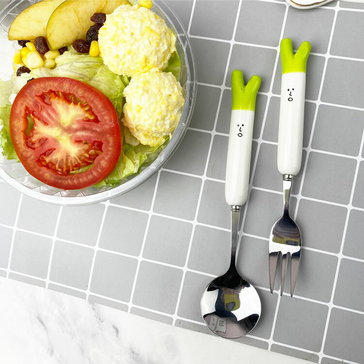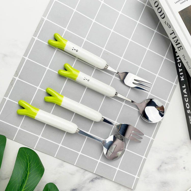 #好運蔥餐具組 #陶瓷握柄 #環保餐具 #304不銹鋼 #湯匙 #叉子 #可愛造型 #療癒