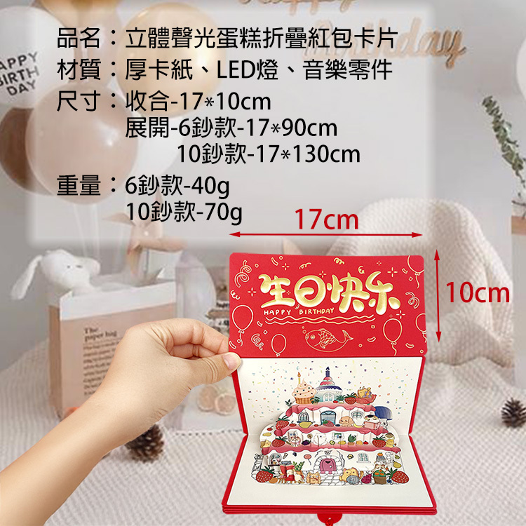 品名:立體聲光蛋糕折疊紅包卡片