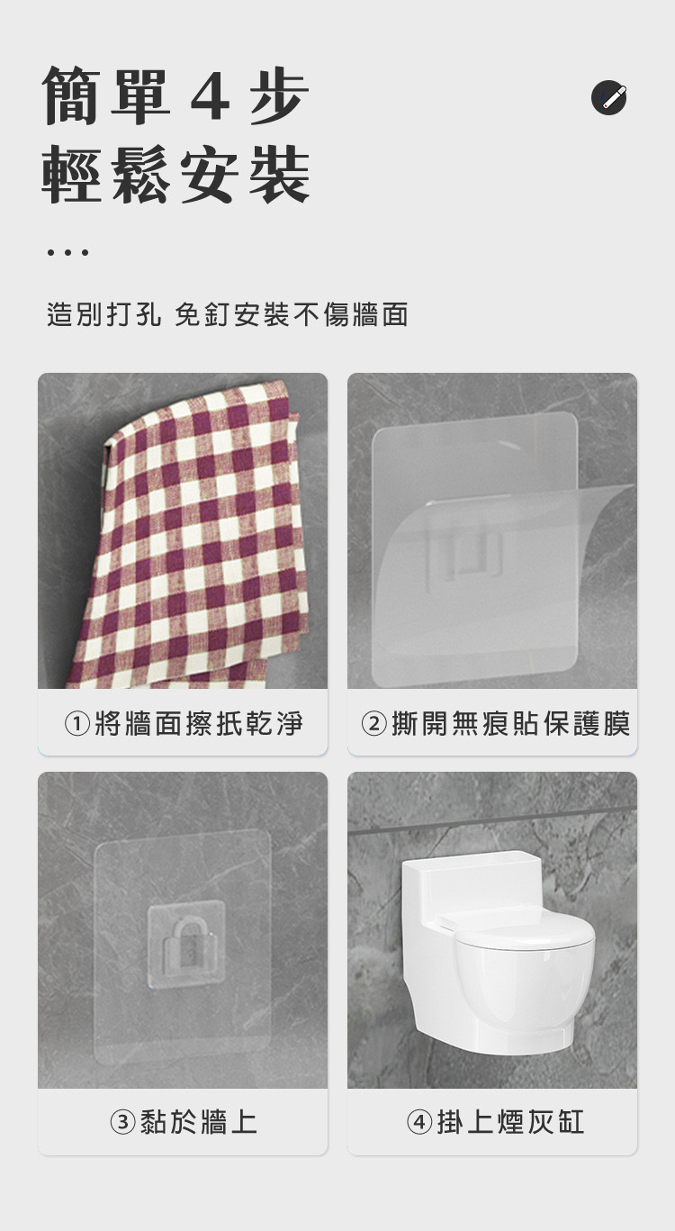 免釘免鑽牆面,隨手一貼即牢固掛置