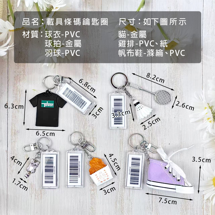 5款可愛配飾任你選:帆布鞋👟、球衣👕、球拍、小貓🐱跟炸雞排