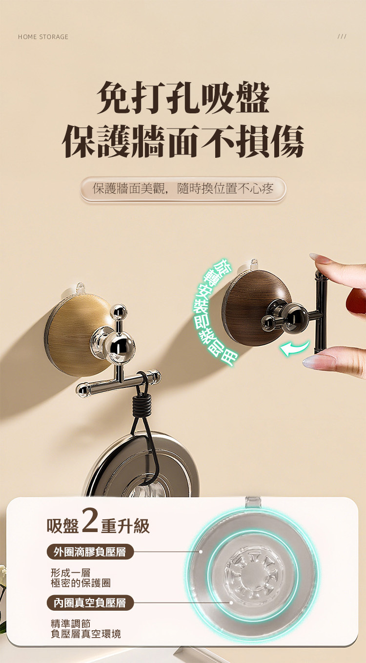 2026 最新升級版「T型三向真空吸盤掛勾」