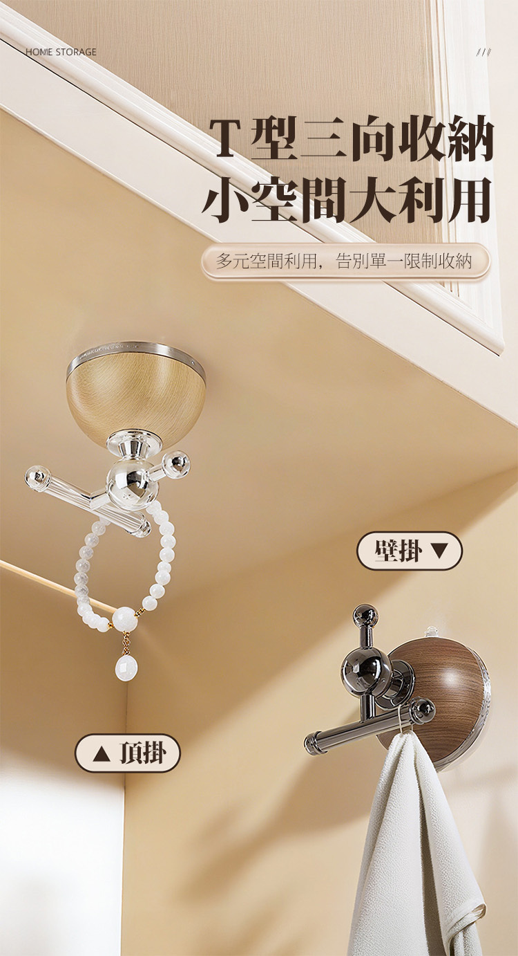 💡獨家 T 型三向收納: 告別單一限制!側掛、頂掛、橫掛通通行