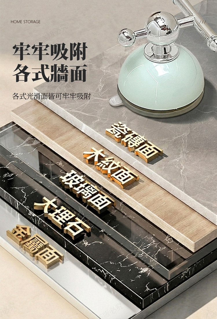 玻璃、瓷磚、大理石、金屬面都能牢牢吸附,不怕水氣濕淋淋。