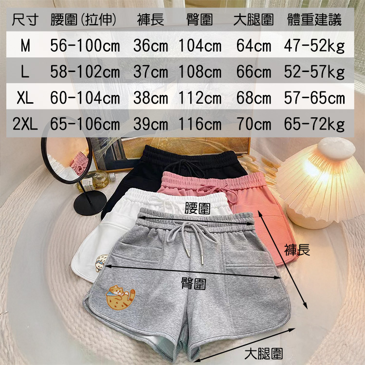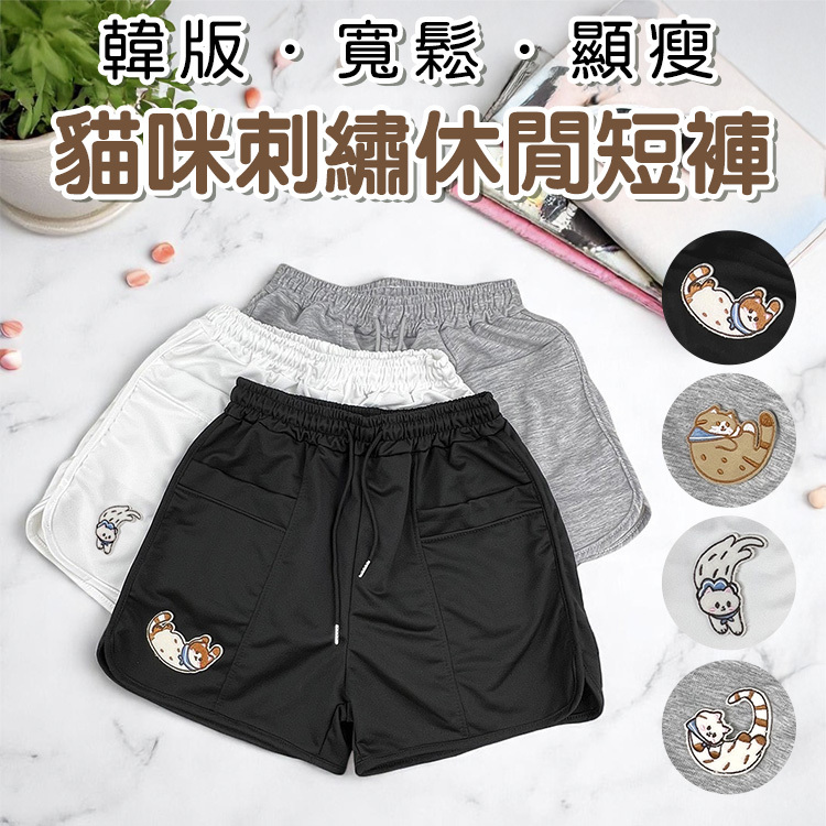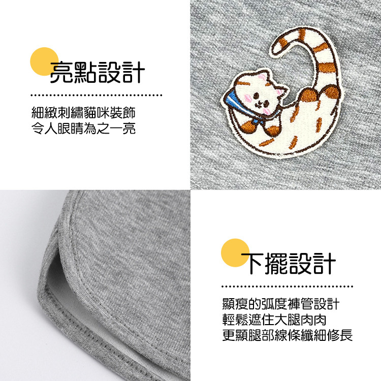 超級舒適貓咪刺繡短褲